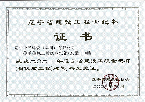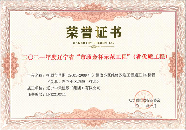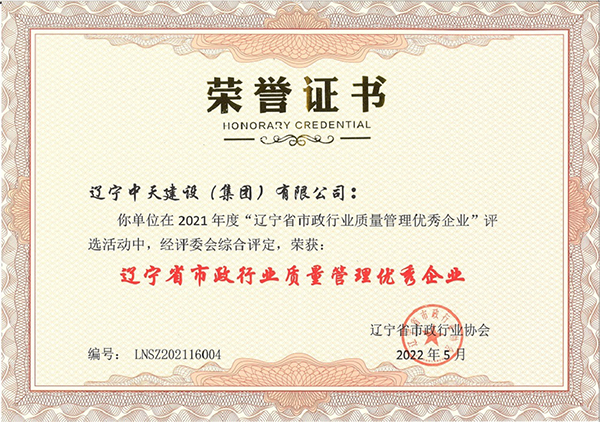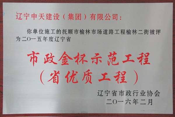 企業(yè)先后榮獲“全國優(yōu)秀施工企業(yè)”、 “中國AAA級(jí)信用企業(yè)”、“全國保障性安居工程建設(shè)勞動(dòng)競(jìng)賽先進(jìn)單位”、“遼寧省最受尊敬企業(yè)”、“遼寧省優(yōu)秀建筑業(yè)企業(yè)”、“遼寧省工程建設(shè)質(zhì)量管理優(yōu)秀企業(yè)”、 “遼寧省守合同、重信用企業(yè)”、遼寧省“AAA級(jí)信用企業(yè)”、 “撫順市安全生產(chǎn)先進(jìn)單位、紅旗單位”、“撫順市安康杯競(jìng)賽先進(jìn)集體”等多項(xiàng)殊榮。